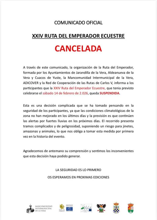 SUSPENSIÓN DE LA RUTA ECUESTRE para este sábado 14 de febrero de 2026