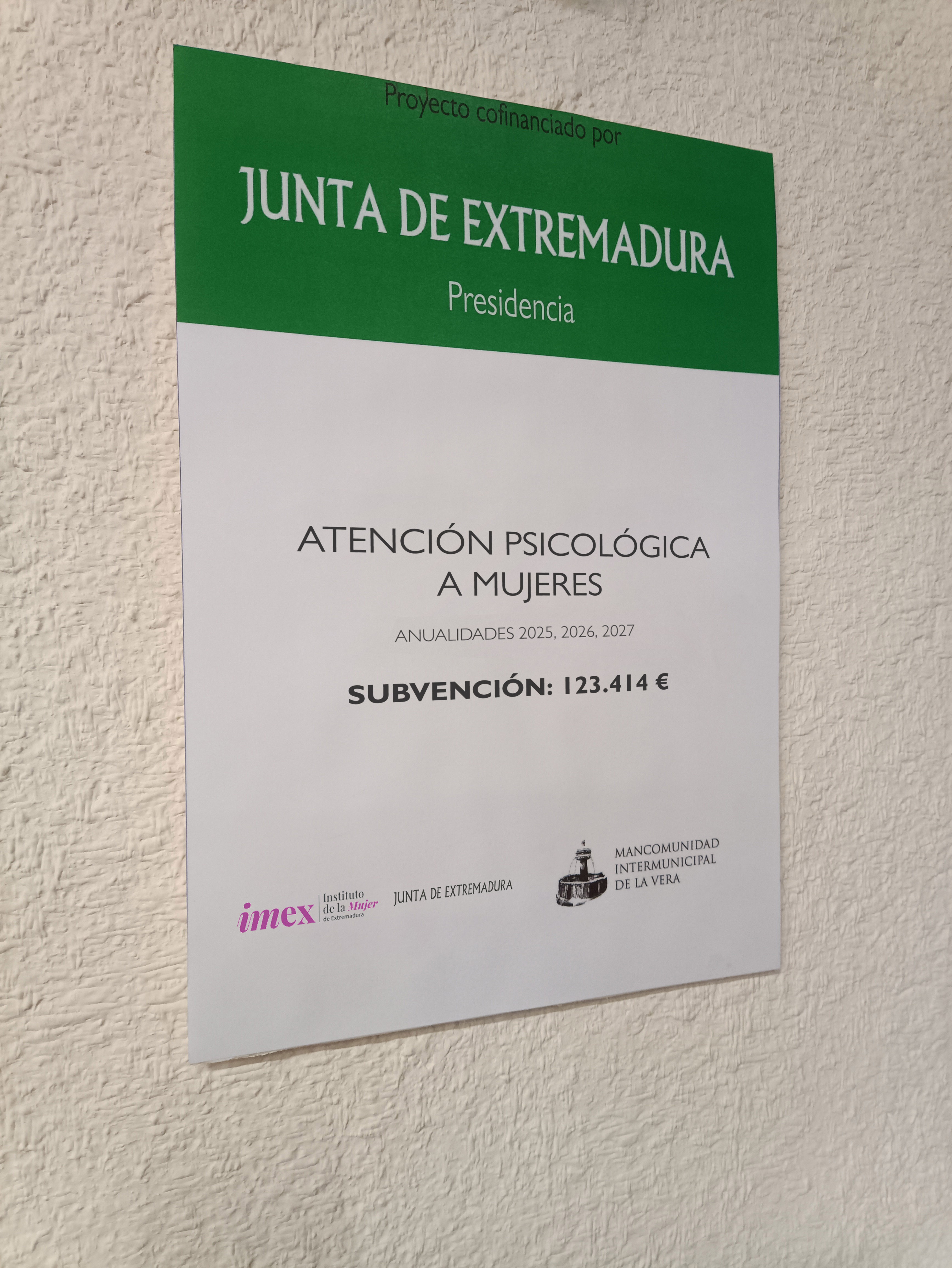 RESOLUCIÓN DE CONCESIÓN DE UNA SUBVENCIÓN DIRECTA, MEDIANTE CONVOCATORIA ABIERTA, A LA MANCOMUNIDAD INTERMUNICIPAL DE LA VERA, PARA EL FUNCIONAMIENTO DEL PUNTO DE ATENCIÓN PSICOLÓGICA, durante las anualidades 2025, 2026 y 2027